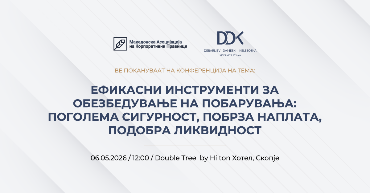 Адвокатското друштво Дебарлиев Дамески и Ќелешоска и Македонската Асоциција на Корпоративни Правници (МАКП) со задоволство Ве покануваат на стручен настан на тема: